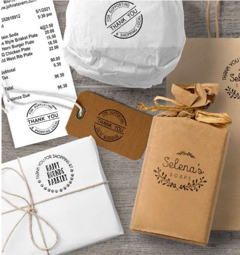 Takové razítko se perfektně hodí na všechny obaly, účtenky, dopisy, dokumenty, papírové tašky a podobné předměty. Personalizace mu dodá důležitý osobní dotek. Vyjadřuje vděk prodejce a dává zákazníkovi příjemnější pocit z nákupu.