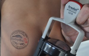Na následujících 2 obrázcích je použito kovové textové samobarvicí razítko s kruhovou textovou deskou průměru 45 mm Trodat Professional 5215 a jeho otisk.