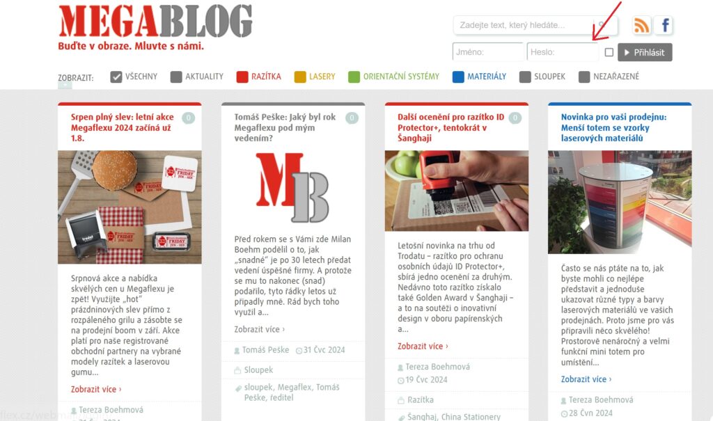 Pokud jste již u nás registrováni a pravidelně nakupujete, stačí vám k zobrazení MEGASLEV jen vaše přihlašovací údaje do našeho e-shopu. Jsou shodné s těmi, které lze použít na Megablogu. Pokud je náhodou nemáte, klidně nám napište e-mail, my vám je rádi pošleme. Poté je stačí zadat na www.mega-blog.cz do kolonek vedle šedého tlačítka „Přihlásit“ a můžete si číst i obsah vyhrazený pouze pro naše zákazníky.