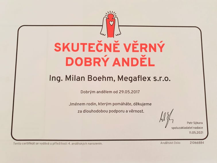 Naši stálí partneři již vědí, že v Megaflexu rádi podporujeme charitativní a dobročinné projekty, kdy je pomoc cílená a konkrétní. Mezi ně patří již 4 roky také Dobrý anděl.