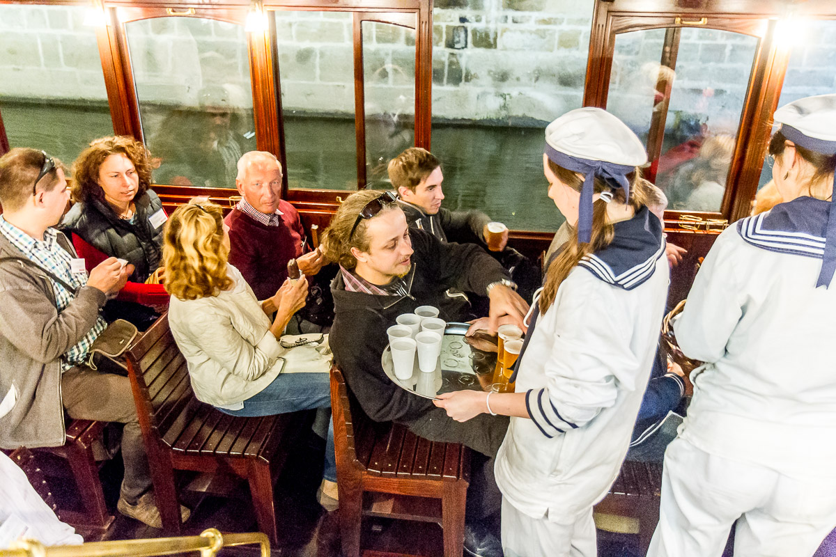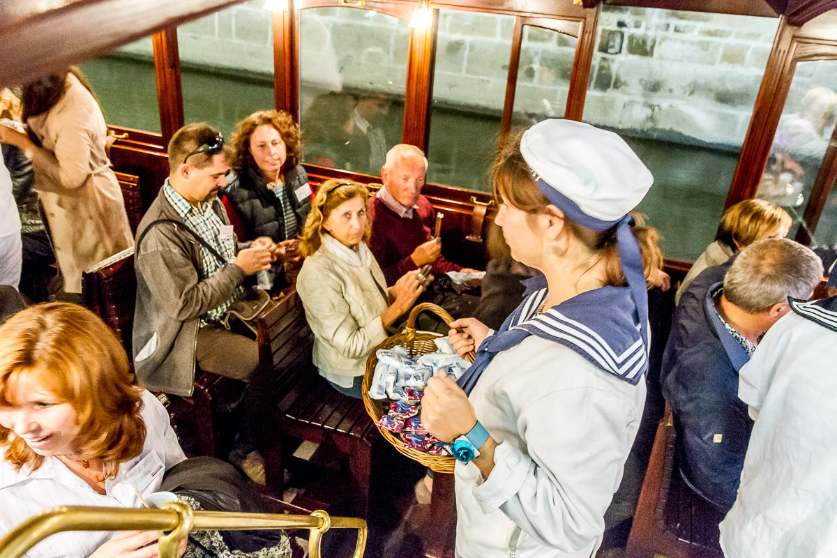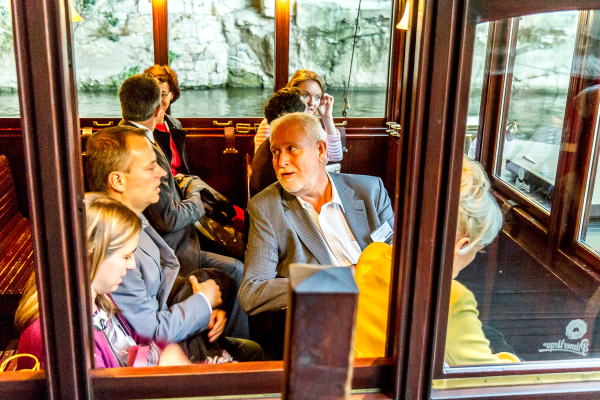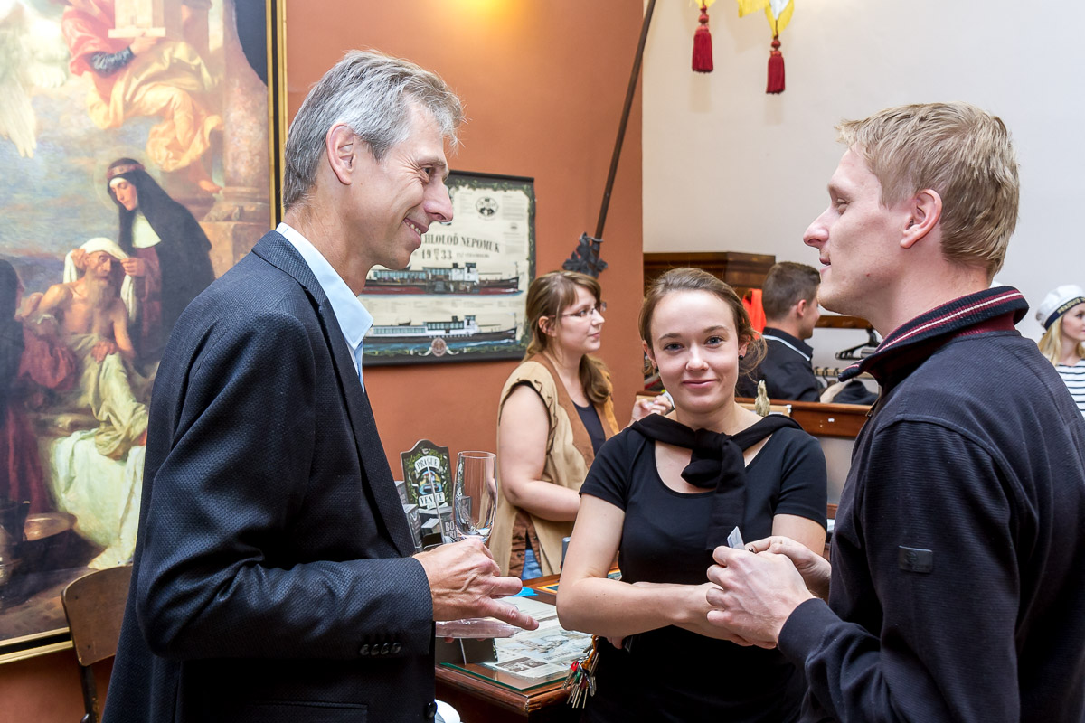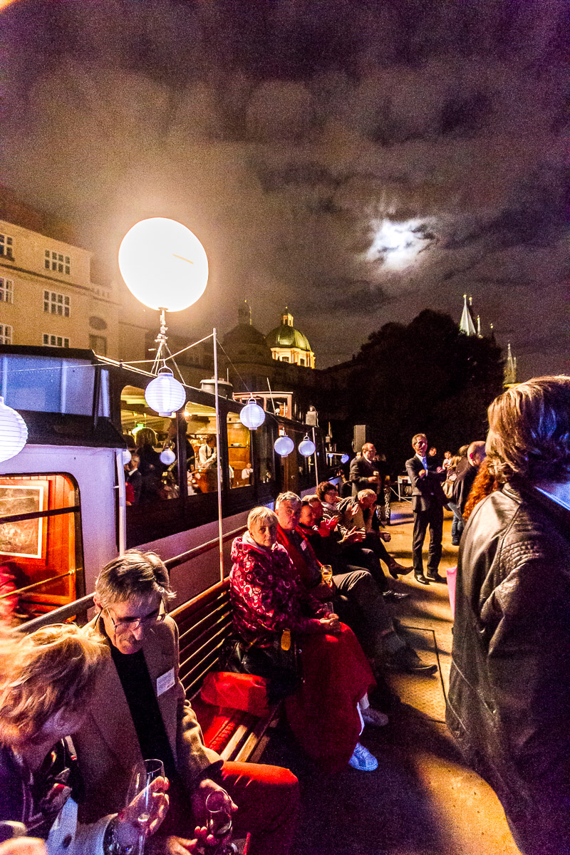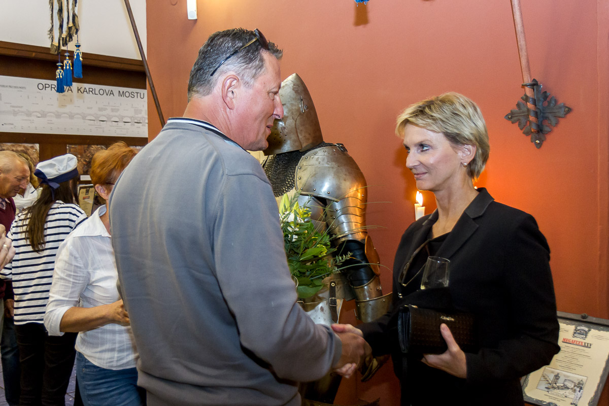 Prohlédli jsme si společně muzeum Karlova Mostu, vyslechli uvítání ředitele Megaflexu, Milana Boehma, popili kávu v barokní kavárně muzea, plavili jsme se originálními čluny VODOUCH s výkladem o tajemném vodním podzemí staré Prahy a vše zakončili rautem, děkovnými projevy a volnou zábavou na palubě historického salónního parníku NEPOMUK, kde vystoupil také výborný hudebník Ondřej Ruml, který si všechny ihned získal svou bezprostředností a neskutečným hudebním talentem.