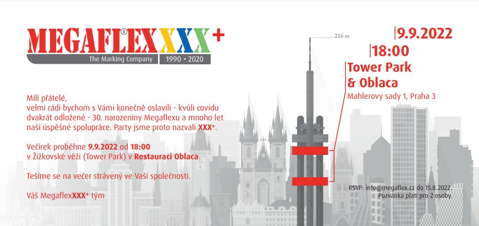 Jak víte z našeho tištěného Megazínu a také z e-mailové pozvánky, už brzy – 9.9. 2022 v 18.00 – se potkáme na kvůli covidu tolikrát odsouvané Megaparty 30+! O to víc si to snad všichni nyní užijeme. Těšíme se na Vás.