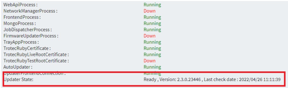 Zde se můžete podívat na stav vaší verze Ruby a kdy proběhla poslední kontrola nových aktualizací.