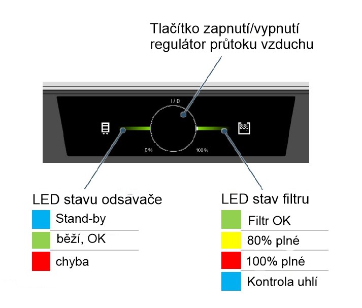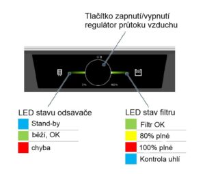 2 – Ovládací panel s regulátorem průtoku vzduchu a LED stavovými informacemi