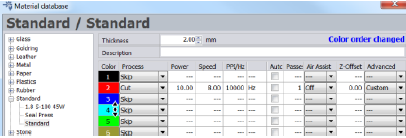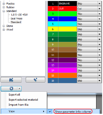 V databázi materiálů můžete vybrat volbu „View – Show parameter info column“. Objeví se dodatečný sloupec. Zde je možné nastavit specifický štítek pro každý proces.