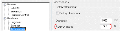 Rychlost otáčení rotátoru lze nyní nastavit v menu Příslušenství. Menší rychlost eliminuje vibrace a výsledkem je lepší kvalita gravury.