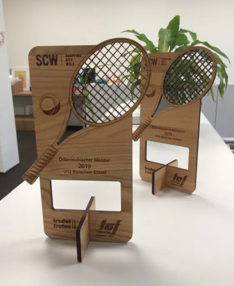 Laserová gravura dělá vaše produkty unikátní. S lasery Trotec můžete snadno popisovat trofeje nebo ocenění pro sportovní kluby nebo tenisové, fotbalové, golfové či hokejové poháry. Pomocí laserového gravírování lze s vysokou přesností a na různých površích vytvořit téměř jakýkoli design – text, logo, obrázek nebo fotografii.