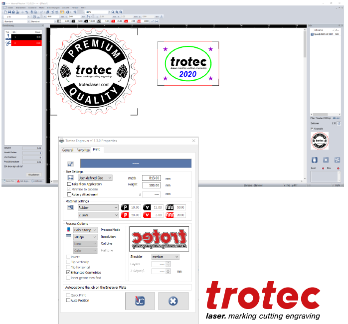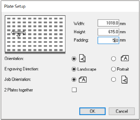 Při umisťování úloh s pravoúhlými liniemi řezu na vnější straně je vhodné mít mezi úlohami definované přesazení. Proto je nyní možné zadat kompenzaci do pole „Padding“ v dialogu „Nastavení desky“. Můžete umístit úlohy  z tiskové fronty na pracovní plochu jako obvykle dvojitým kliknutím a úlohy budou umístěny s posunem mezi nimi.