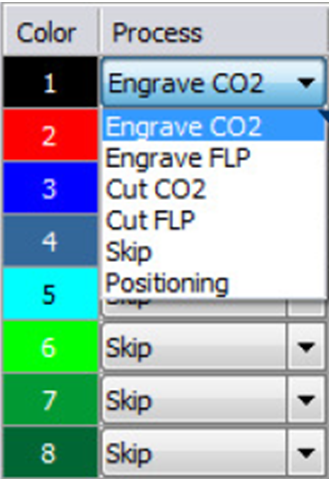 - Výběr procesu úlohy pro jednotlivé barvy (zobrazení pouze podle použitého laseru)
