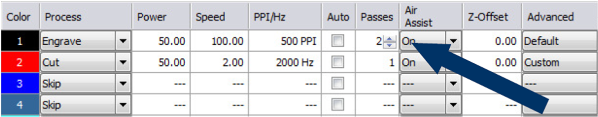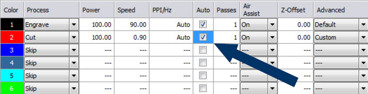 - Možnost použití barvy pouze pro umístění úlohy (barva nebude laserem zpracována)