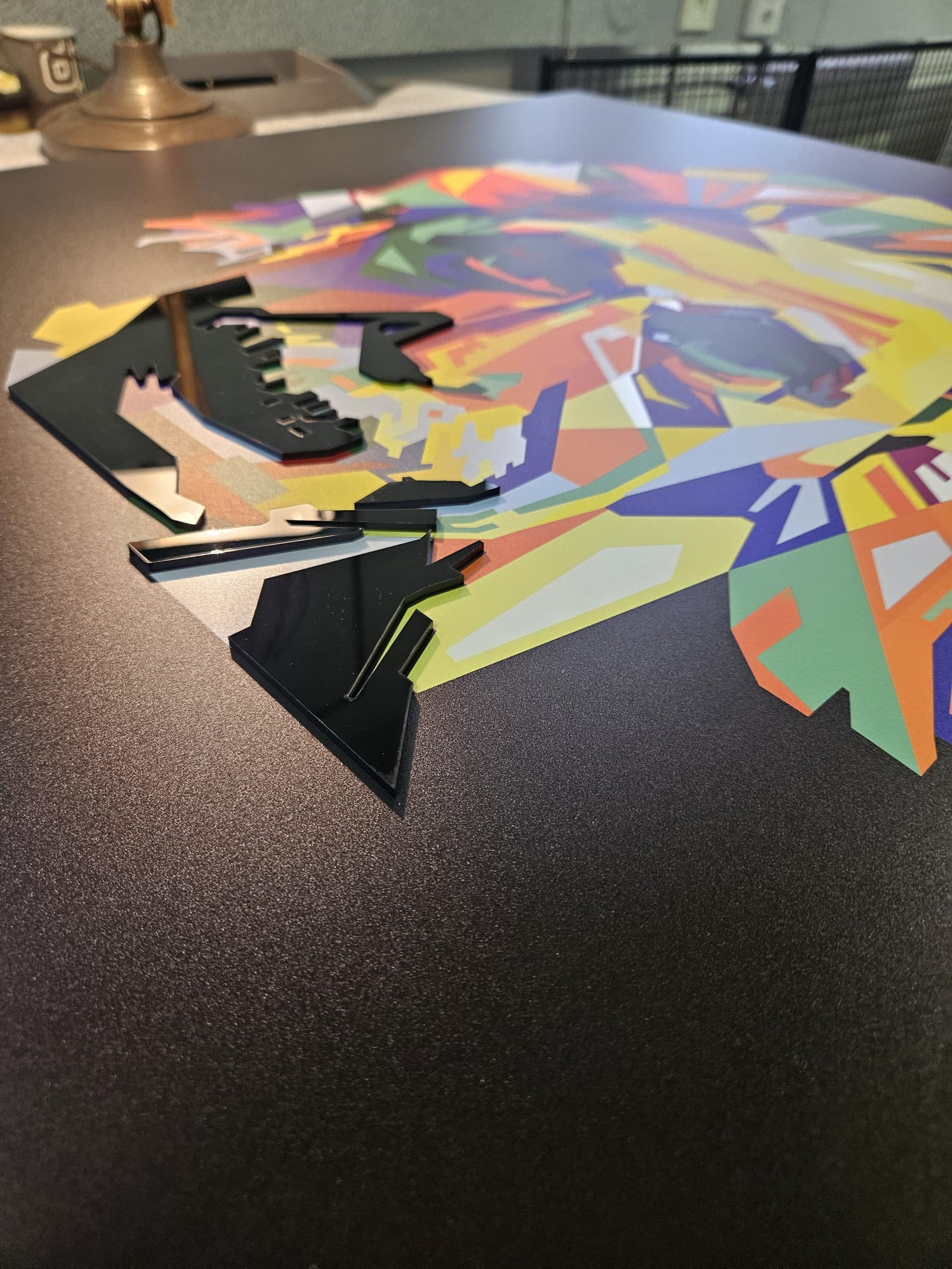 Pokud se rozhodnete to také vyzkoušet, například na jakémkoli reklamním panelu, uvidíte, že s dobrými materiály a kvalitním laserem je to hračka. Pro dosažení úplné přesnosti mají lasery Trotec praktickou funkci, která umí k obvodu vyřezávaných dílů přidat nastavitelnou tloušťku řezu, takže dílky pak složíte zcela přesně k sobě. Samozřejmě, chce to trochu praxe, ale o tipy se s vámi rádi podělíme.