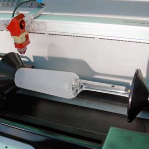 Chcete-li vložit a připojit rotační jednotku, tak musí být laser vypnutý. Poté můžete laser zapnout a vložit připravenou sklenici do rotátoru..