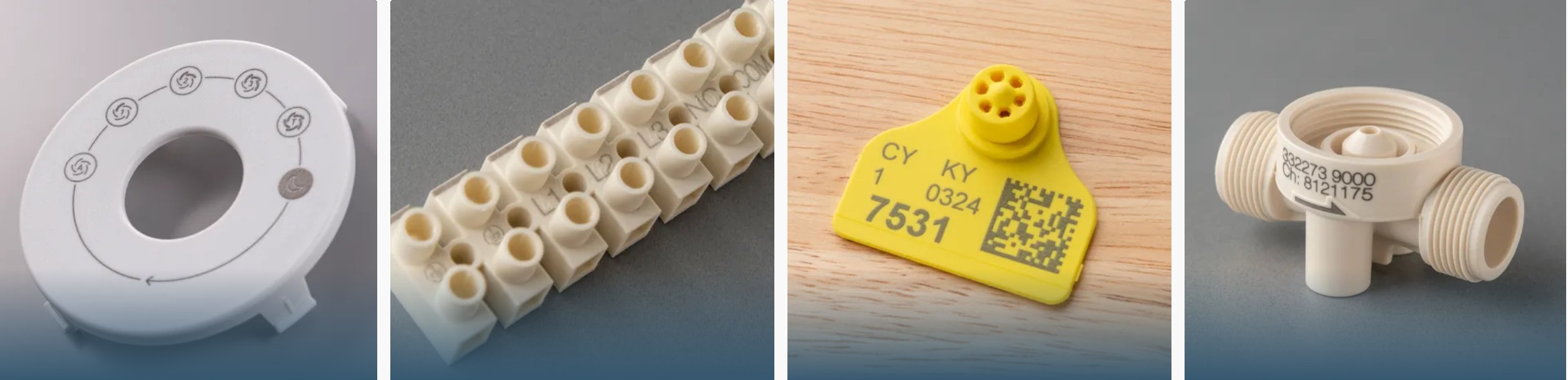 Produkty pro elektronický průmysl jsou obvykle vyráběny plně automaticky v bezobslužných výrobních linkách. Komponenty často musí být označeny množstvím informací. Obsahují alfanumerické popisy, často i 2D kódy, které musí být snadno a trvale čitelné.