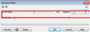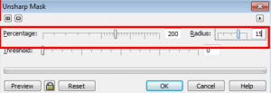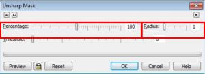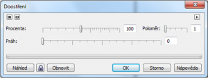 Procenta definují, jak moc světlejší resp. tmavší budou dané body (pixely). Poloměr (Radius) rozhoduje kolik bodů (pixelů) je ovlivněno. Ve většině případů je použit Poloměr. Čím vyšší je poloměr, tím více vypadá obrázek jako kresba.