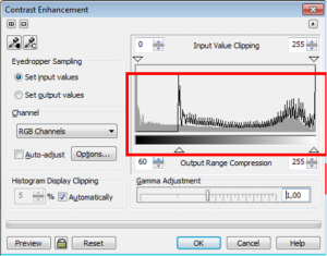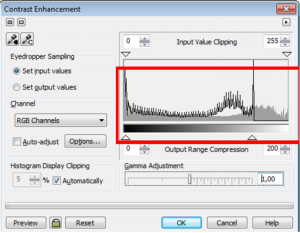 Ořezání vstupních hodnot (Input Value Clipping): Zvyšuje kontrast obrázku. Nejtmavší a nejsvětlejší hodnoty odstínů šedi jsou definovány jako černá resp. bílá. Velmi užitečné pro obrázky se špatným kontrastem.