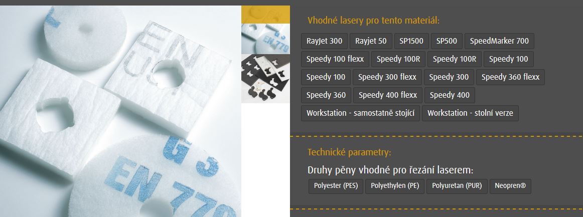 Nejen dřevo, sklo nebo plast, ale i různé výrobky z pěny lze řezat na laseru a vyrábět velmi zajímavé věci. Lasery Trotec zajišťují precizní řez. Vhodné pro řezání laserem, laserové gravírování a značení jsou Pěny z polyesteru (PES), polyetylénu (PE), polyuretanu (PUR) nebo Neoprenu®.