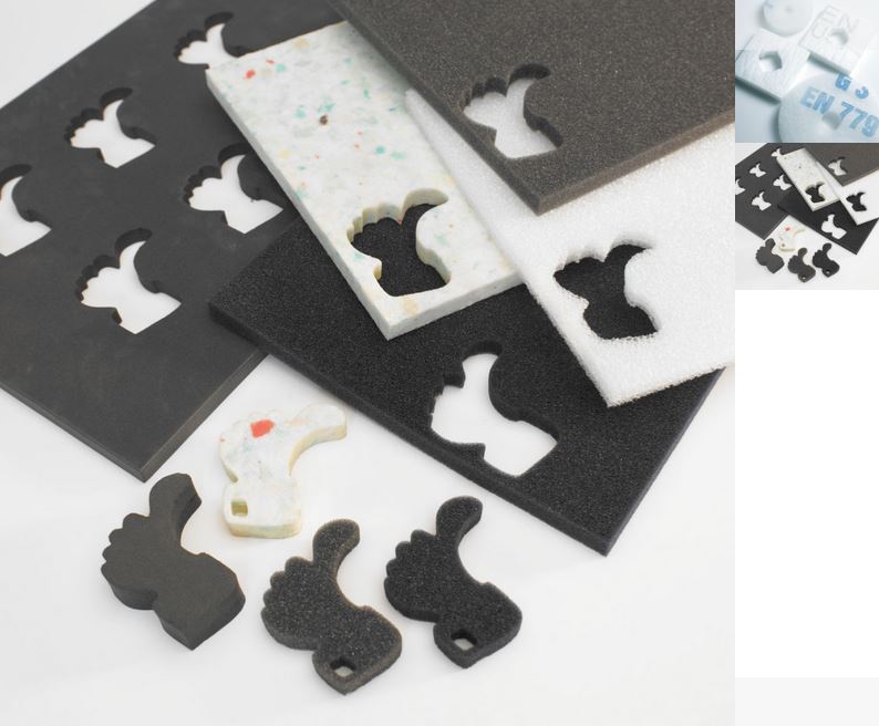 Laser je vysoce flexibilní nástroj: Všechno je možné, od prototypů až po sériovou výrobu. Lze pracovat přímo z grafického programu, což je velmi důležité zejména v oblasti rychlého projektování. Ve srovnání s komplexním procesem řezání vodním paprskem, laser je podstatně rychlejší, pružnější a efektivnější. Pěna řezáná laserovým strojem bude čistě roztavená s uzavřenými okraji.