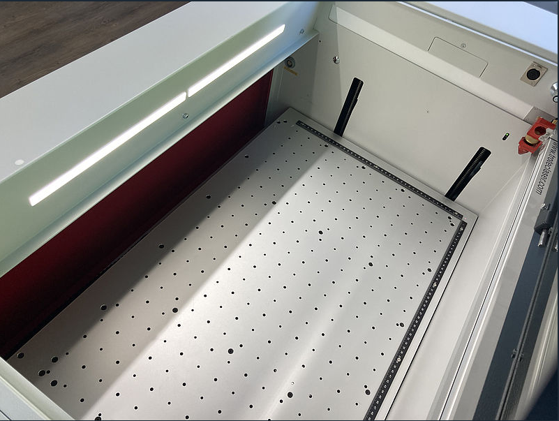 Nově integrované LED osvětlení zajišťuje rovnoměrné osvětlení pracovního prostoru. To zlepšuje pohodlí uživatele a umožňuje také rychlejší nastavení gravírování a řezání.