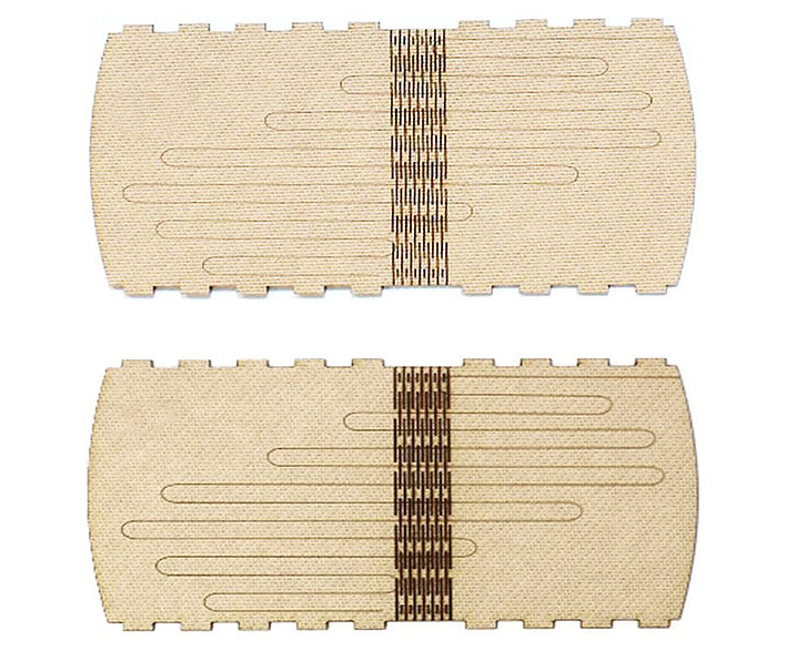Dřevo: ostré řezací čáry a kiss cut, těsné spojení dvou částí bez nutnosti úprav