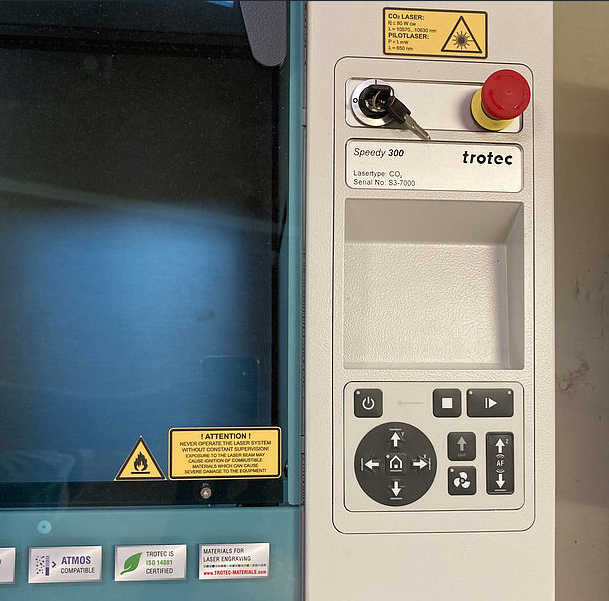 Kromě toho společnost Trotec vyvíjí bezpečnostní a ochranná zařízení, díky nimž jsou naše lasery jedním z nejbezpečnějších ve své třídě na celém světě: Klíčový vypínač a nouzové tlačítko na nových Speedy 100 a Speedy 300 jsou nyní přesunuty vedle klávesnice, takže laserový proces lze okamžitě zastavit v nebezpečných situacích.