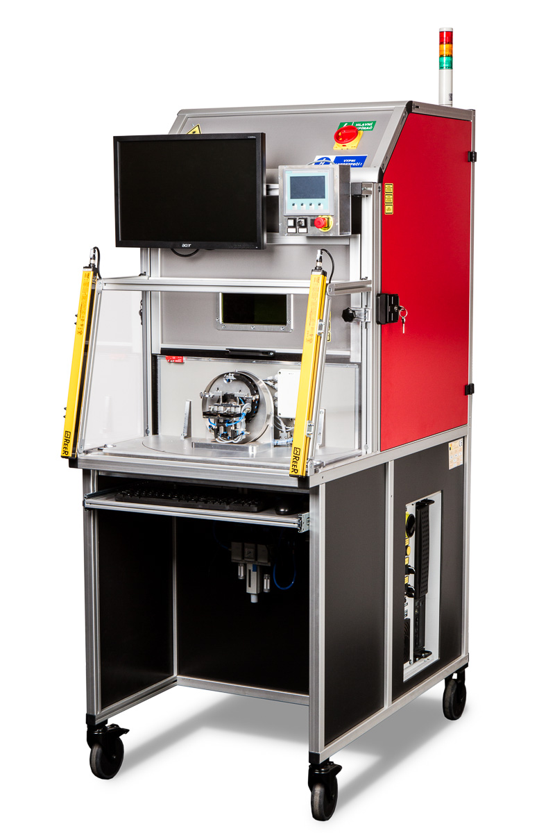 Elektrický otočný stůl: urychluje a usnadňuje práci obsluze. Pohybuje se kývavým pohybem a má dvě pozice. Jedna pozice je vždy uvnitř stanice pod laserovou hlavou a druhá pozice je přístupná zvenku. V praxi to znamená, že ve stejném momentu na jedné pozici zařízení značí a na druhé pozici může obsluha vyjmout očištěné cívky a následně založit cívky nové.
