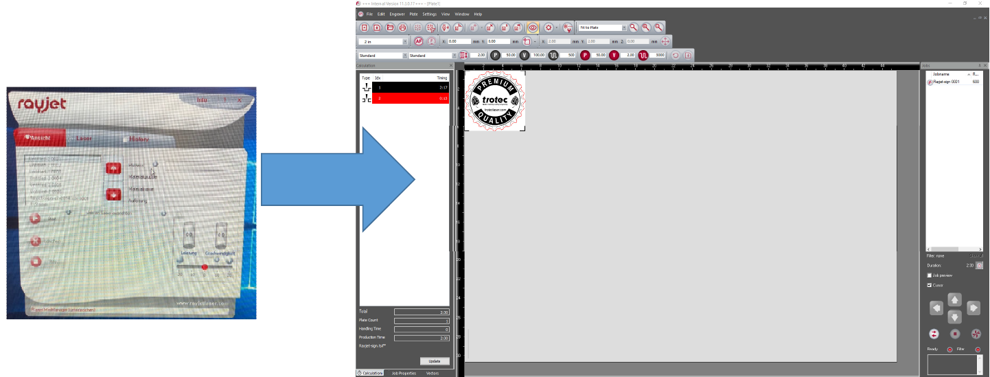 Rayjet Manager je založen na špičkové softwarové koncepci společnosti Trotec. Se softwarem Rayjet Manager a tiskovým ovladačem Rayjet Manager Engraver jsou soubory odesílány ze všech grafických a CAD programů přímo do laseru se zaručenou kompatibilitou. Díky vestavěné databázi materiálů budete od prvního dne efektivní. Rayjet Manager má základní funkčnost na bázi JobControlu plus některé další nejžádanější funkce a je kompatibilní s Windows 10.