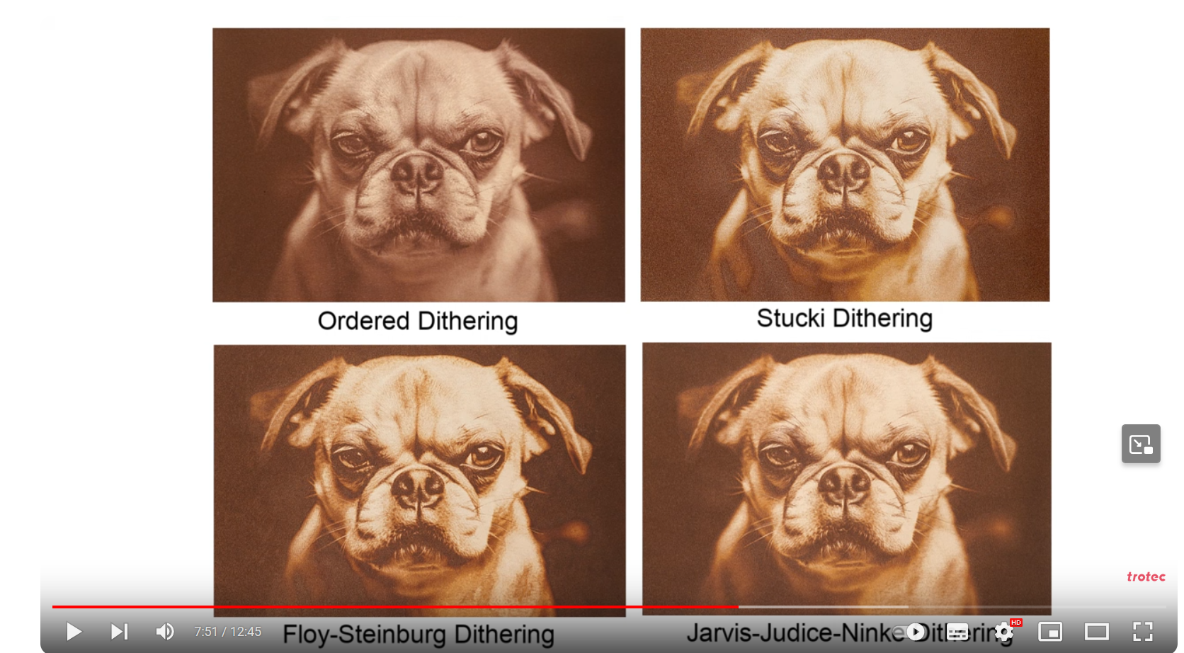 V instruktážním videu vás náš oblíbený kolega z Trotec USA Laser Dave provede procesem, kdy nejprve přenese pomocí softwaru Ruby fotografii na dřevo a posléze stejný proces vyzkouší na tmavém leštěném mramoru a nakonec na kůži.