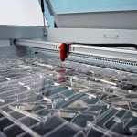 Technici přišli s inovativním designem i koncepcí pracovního stolu laseru, významně urychlující a zjednodušující manipulaci. Stůl Speedy 400 je vybaven kovovým rámem, který vždy zůstává ve stroji, podle potřeby vyměňujete pouze jeho vrchní desku. Můžete použít rovný základní stůl pro standardní gravírovací úlohy, řezací stůl Honeycomb pro řezání malých částí, stůl s lamelami pro složitější řezání nebo i děrovaný stůl, pokud chcete využít výhod vakuového stolu. Jelikož rám zůstává v laseru, je právě používaný stůl vždy perfektně utěsněn tak, aby výkon odsávání byl maximální.