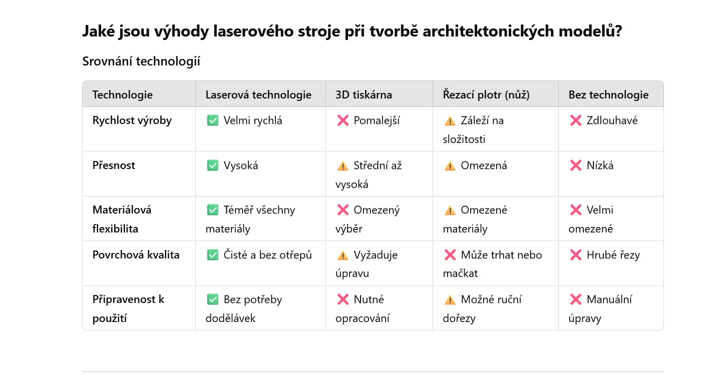 Stačí návrh a laser jej zpracuje s maximální přesností a vyřeže komponenty pro detailní stavební modely, železnice, zmenšené repliky konstrukcí nebo architektonické makety. Jednotlivé díly lze ihned použít bez dalšího opracování – bez prachu nebo pilin.