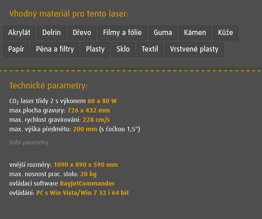 Detaily a příslušenství, plus dokumetny a smouvy k pronájmu Trotec RayJet 50 najdete ZDE