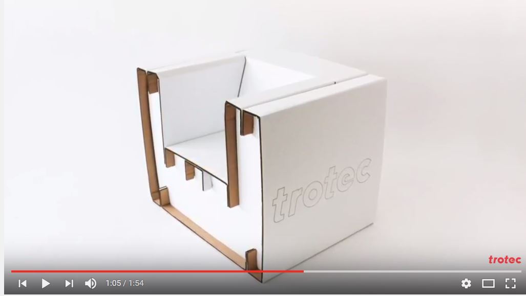 Zajímavé aplikace laserů: Obří laser TROTEC SP 3000 vyřezal křeslo z kartonu