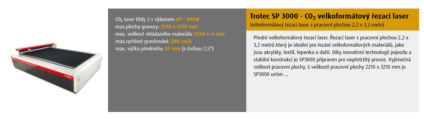 • CO2 laser vhodný pro velké formáty a rozsáhlejší projekty