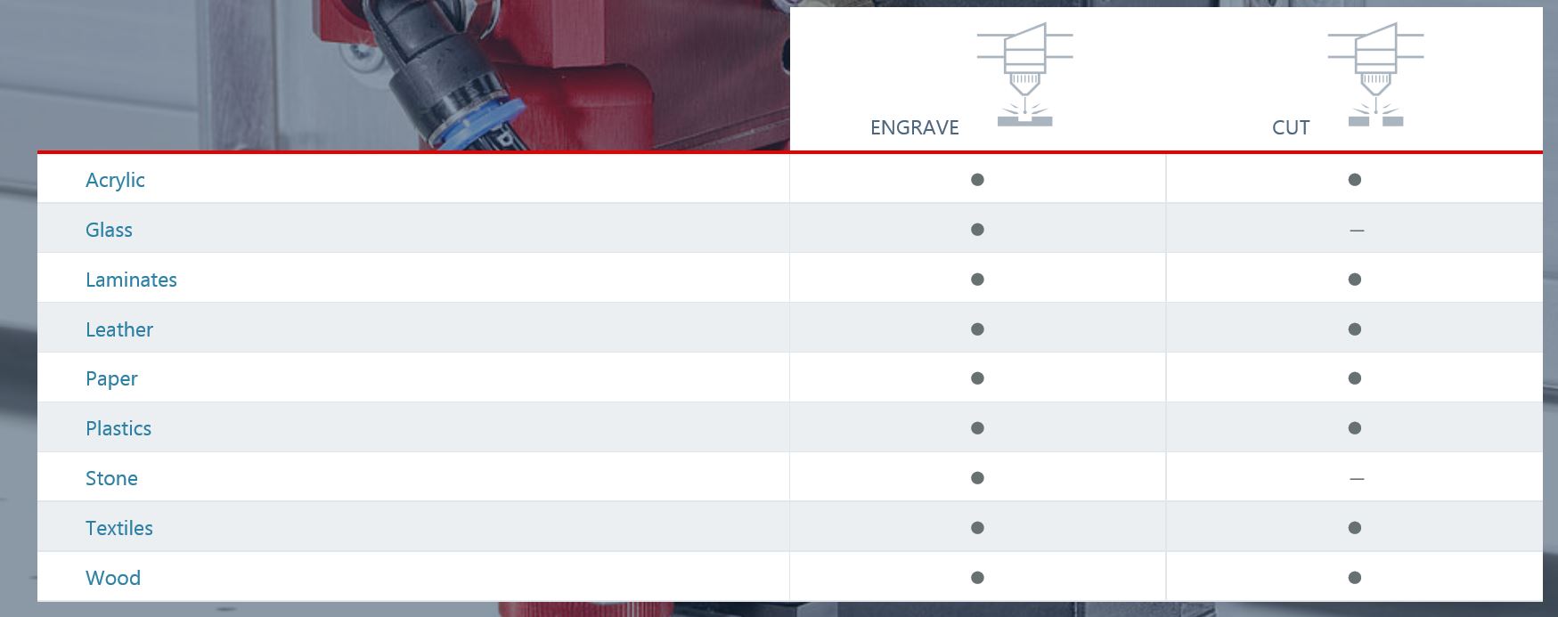 V následující galerii najdete mimojiné i přehled vhodných materiálů pro SP lasery. Pro zvětšení a detail klikněte na náhledy obrázků: