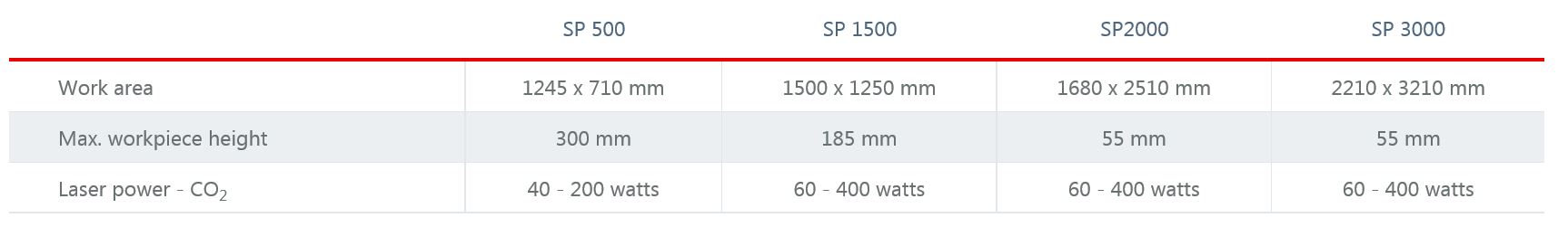 Porovnejte také velikosti pracovní plochy laserů řady SP: