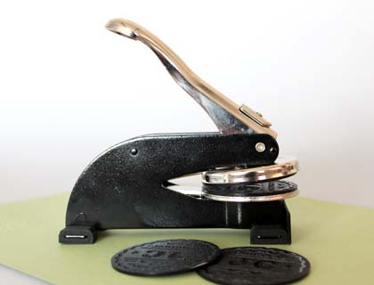 Nová generace reliéfního stolního razítka ve třech velikostech pro otisk na běžném kancelářském papíru do 80g/cm2. Úprava povrchu: chrom v kombinaci s černou matovou barvou.