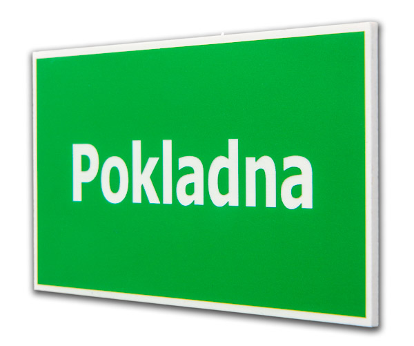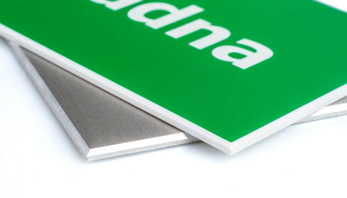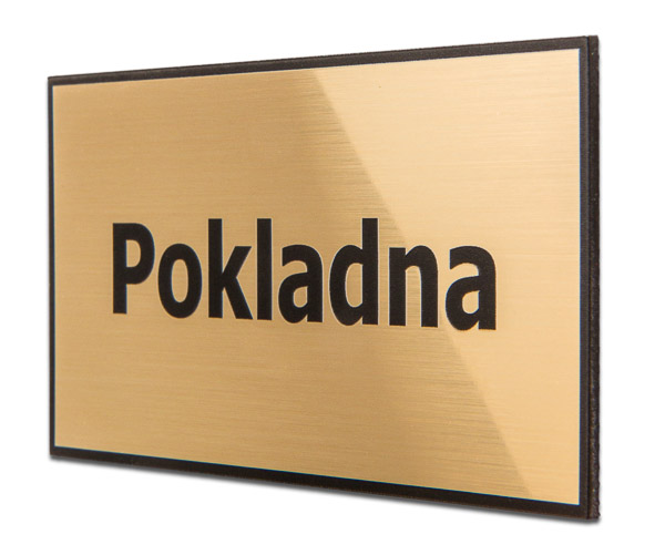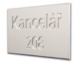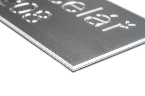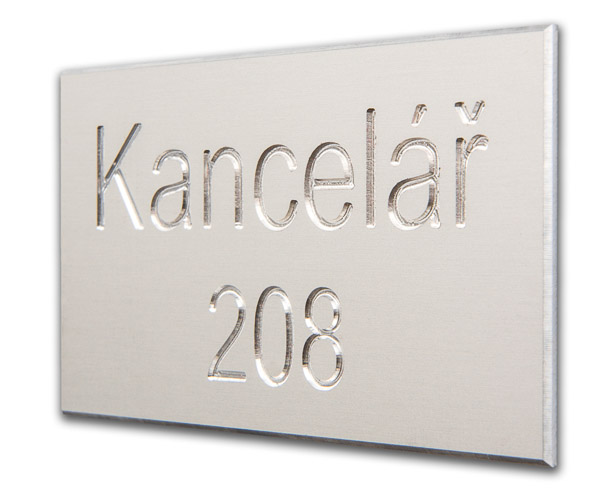 - Takto vypadá štítek na eloxovaném hliníku s fazetou