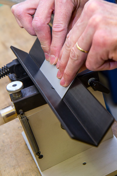 Druhá možnost je vytvoření frézy mechanicky. Pokud máte mechanickou gravírku, fazetu jednoduše vytvoříte fazetovací frézou nebo frézou broušenou na 45 stupňů. Lze jí aplikovat na všechny materiály.
