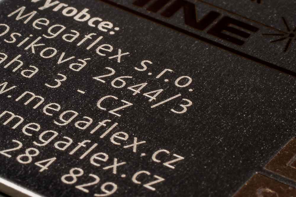Ideálním řešením při popisu nerezových materiálů je použití vláknového laseru MEGAFLEX SHINE, který žíháním změní barvu povrchu nerezu a vytvoří tak jasný, kontrastní popis. Pokud jej však nemáte k dispozici, lze s úspěchem použít laser na bázi CO2 ve spojení se speciálním
