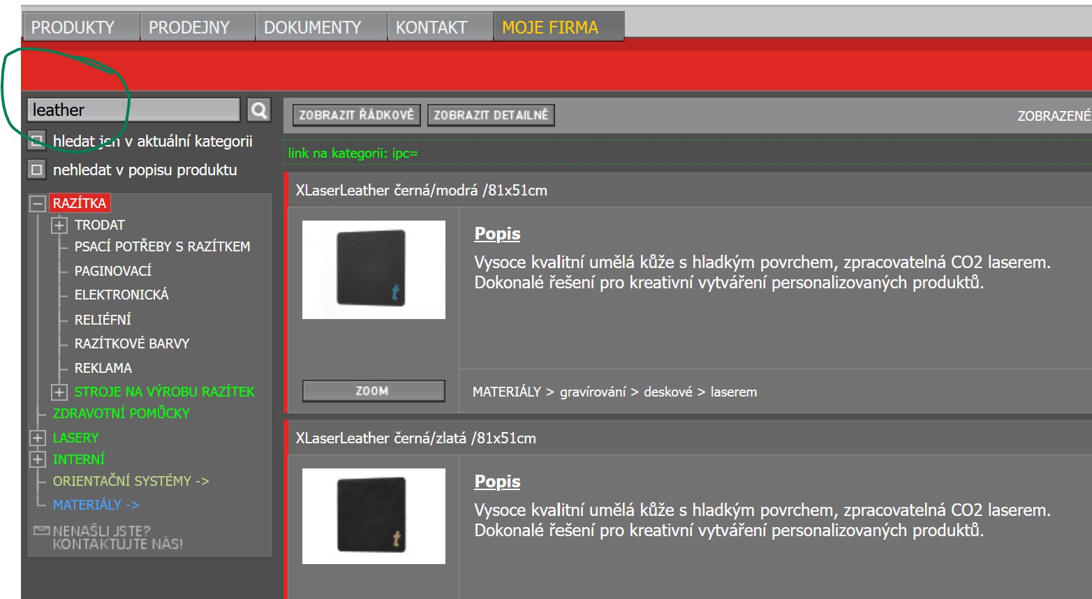 Materiál LaserLeather můžete objednat v našem eshopu v sekci materiály. Vyhledáte jej snadno při zadání klíčového slova „leather“ do řádku vyhledávání.