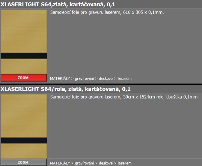 Oblíbené materiály z naší nabídky: X LASERBLAK