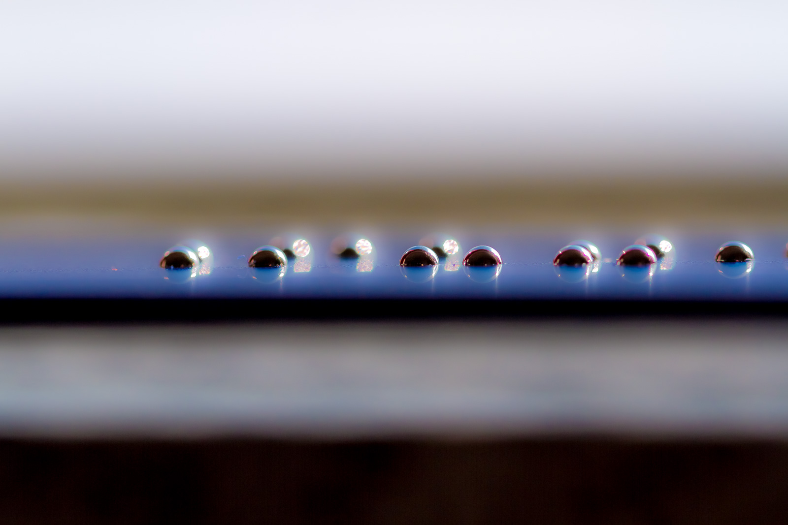 Standardní mechanické postupy výroby značení s Braillovým písmem jsou velmi zdlouhavé. Zkusili jsme proto docílit výše zmíněného standardu pomocí vláknového laseru Megfalex Shine Fiber a speciálního materiálu, který má tu vlastnost, že po průchodu paprsku zpění – Viz : Základy laserového značení – Pěnění (foaming). Testy jsme prováděli na dvou speciálních materiálech, obou v bílé barvě doplněné o transparentní krycí folii. Nejprve si musíme říci něco málo obecného k vhodným materiálům.