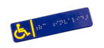Všechny naše štítky mají standardní velikost 115 x 31 mm a jsou vyrobeny z plastu ADA, vyvinutého právě pro tento typ značení. Braillovo písmo je provedeno z vystupujících nerezových kuliček, žlutý logotyp je reliéfní a lze jej také rozeznat hmatem. Každý štítek je podlepen samolepicí páskou, instalace je tedy zcela snadná a zvládne ji každý váš zákazník.