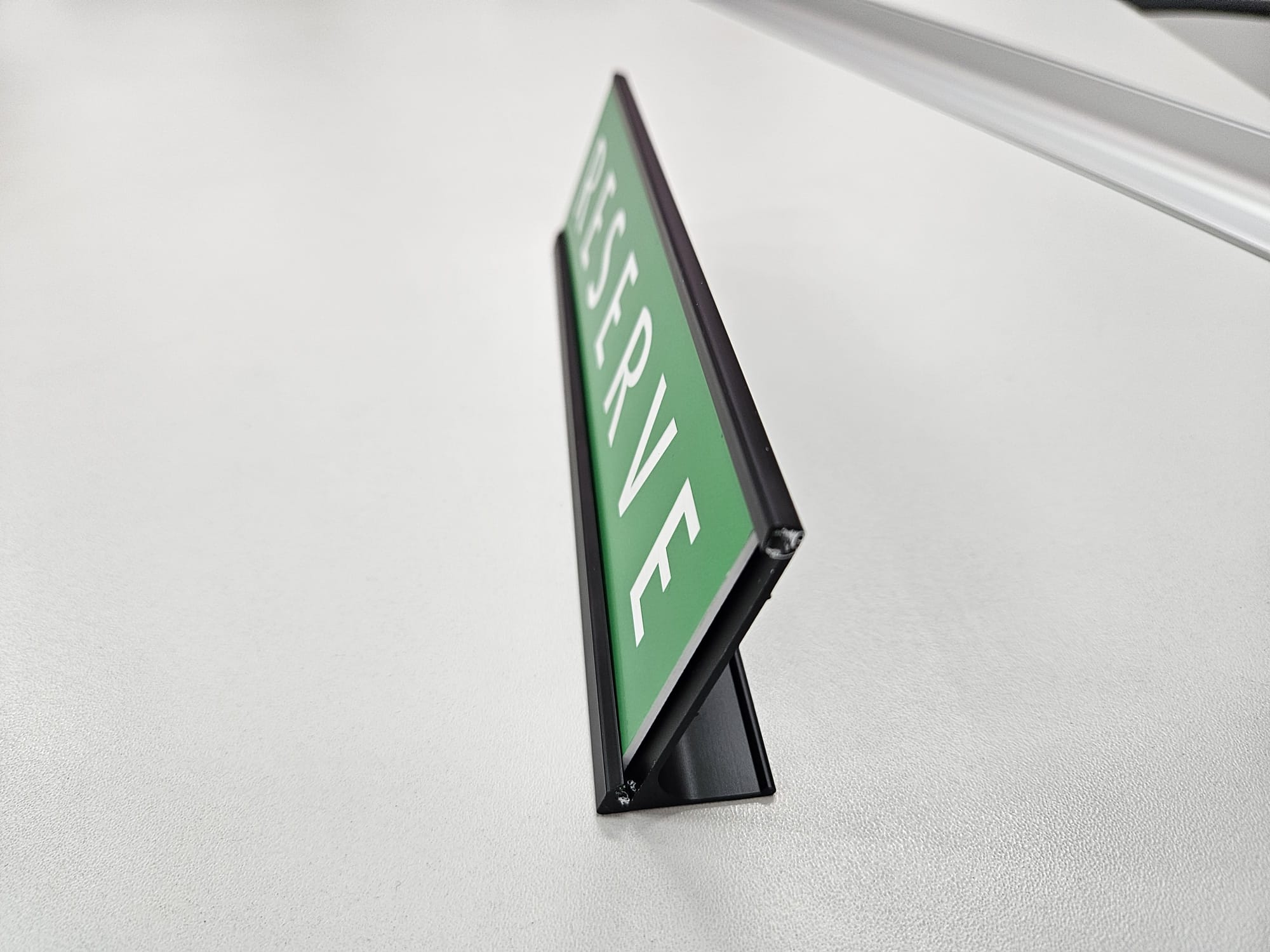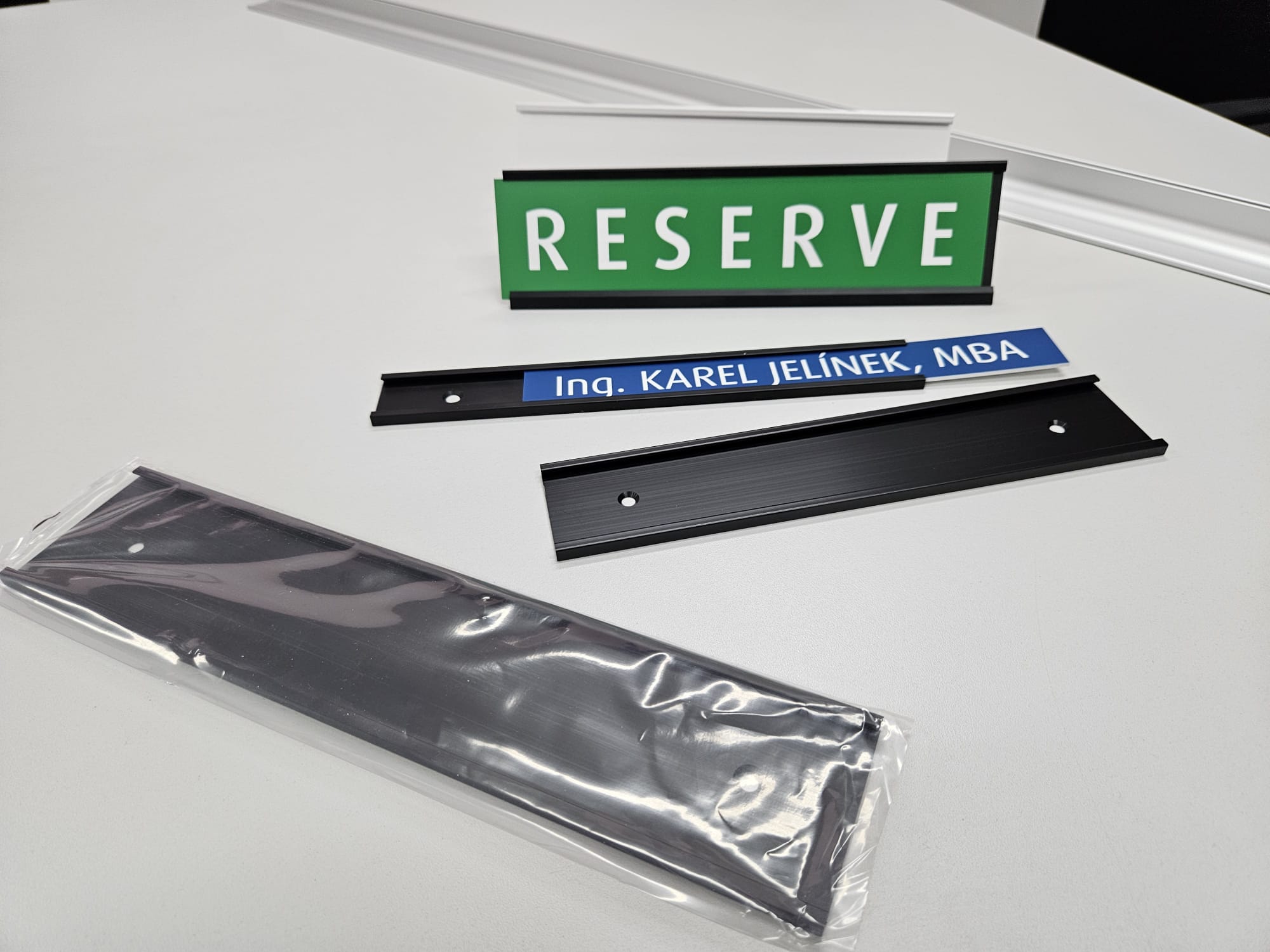 Máme další dobrou zprávu. Rozšiřujeme řadu našich profilů pro výrobu orientačních systémů o hotové výrobky Rowmark. Jedná se o praktické profily s předvrtanými a zahloubenými otvory k uchycení na stěnu. Dodávat je umíme i po jednotlivých kusech, bez bočnic a bez ostrých hran. Profily je samozřejmě také možné přilepit oboustrannou lepicí fólií. Stejně tak jednoduché a praktické jsou i nové stojánky na stůl.