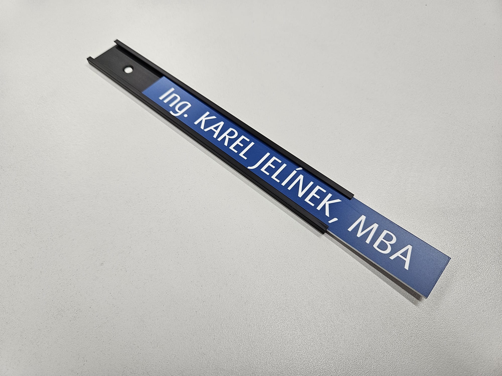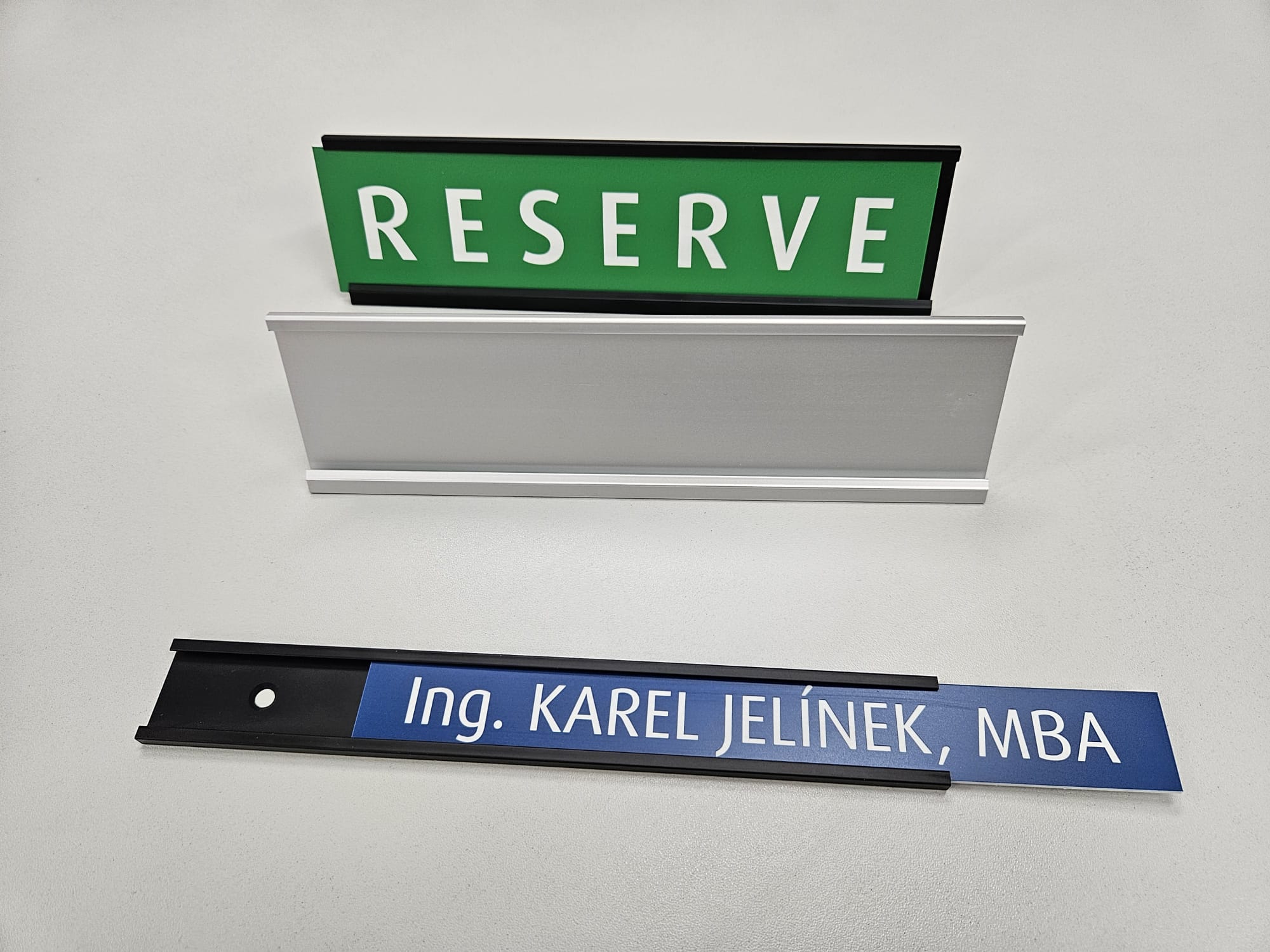 – tento typ je na rozdíl od předchozích prodáván na metráž, umíme nařezat dle potřeby. Dovnitř lze zasunout cedulku o tloušťce až 3,8 mm.