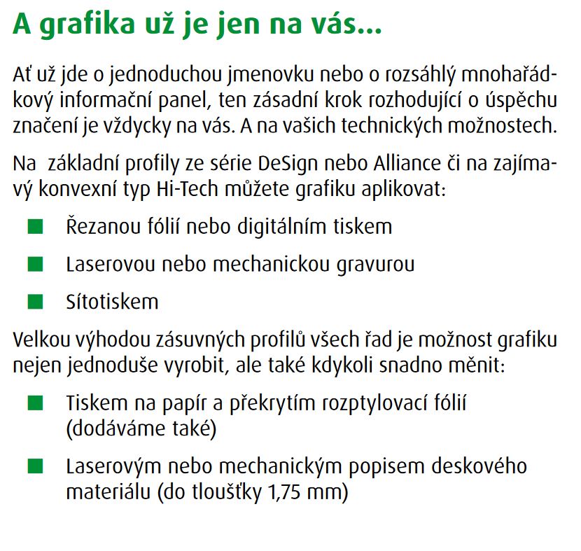 Na vás, jako na dodavatelích orientačního systému nebo i jen jediné tabulky, zbývá aplikace grafiky podle požadavku zákazníka a instalace.