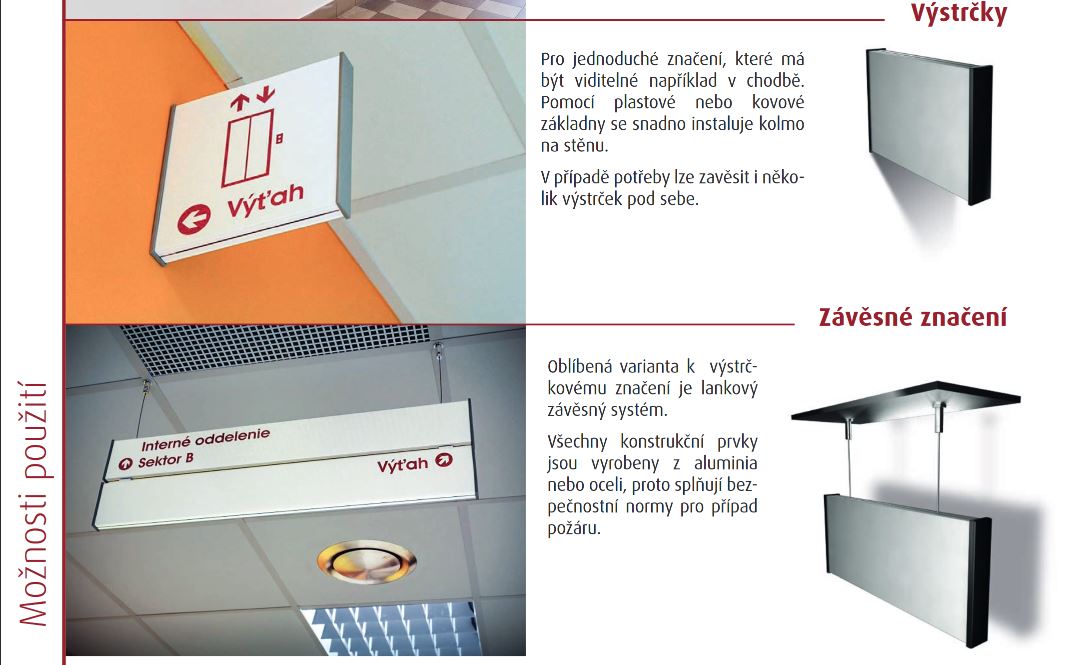 - Nástěnné značení, Výstrčky, Závěsná značení,
