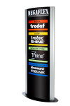 UV tiskárnou se libovolným (např. reklamním) textem potiskne mléčné plexisklo, které se posléze zasune do dvou sloupových profilů, zepředu i zezadu – což umožňuje oboustranné využití.