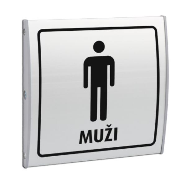 Jedná se o hotové nástěnné značení TRILINE v provedení Hi-Tech s elegantním vypouklým designem a piktogramem. Bočnice je z šedého plastu.