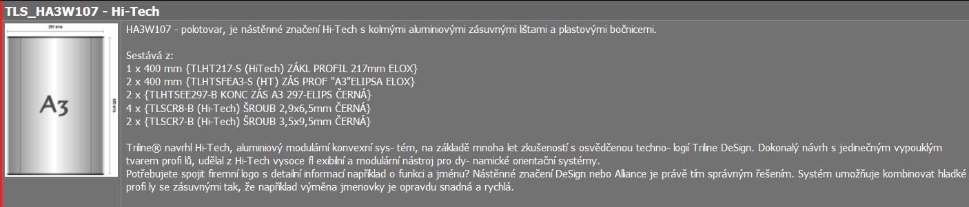 Celý systém TRILINE svou variabilitou dnes již přesahuje běžnou představu o orientačních systémech a nabízí i technicky dokonalá řešení pro výstavní a informační panely, včetně moderních prosvětlených, s rychloupínacími patentovanými profily.