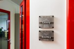- Elegantní značení ze dvou vrstev plastů: podklad je z desky Rowmark Granit, vrchní vrstva z gravírovaného a vyřezaného matného akrylu.